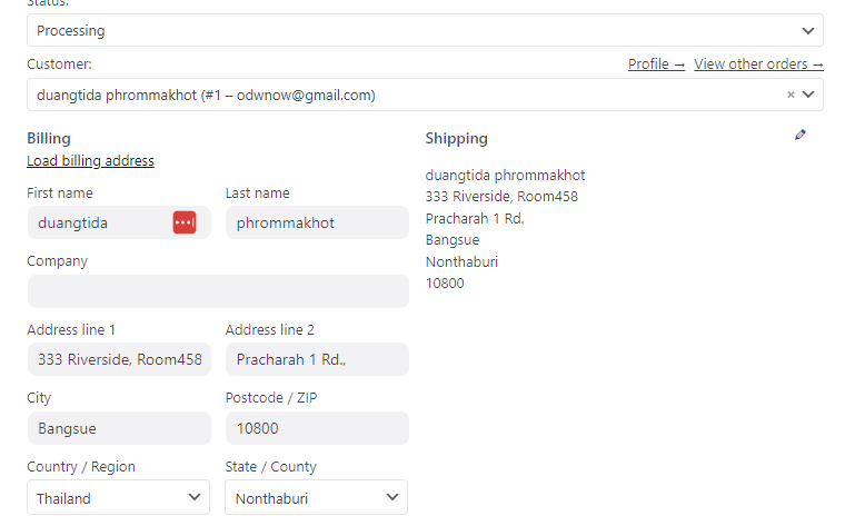 • ตรง Billing Details กับ Shipping Details ถ้าหากอยากแก้ไขก็ให้คลิกที่ปุ่มรูปดินสอด้านหลัง จะขึ้นฟอร์มมาให้แก้ไข