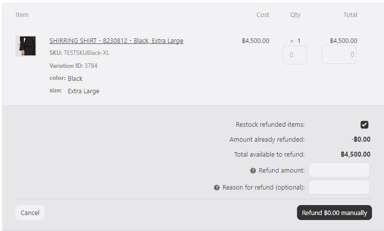 – Restock refunded item = ติ๊ก ถ้าต้องการให้สินค้านี้คืนค่ากลับคลังสินค้า
